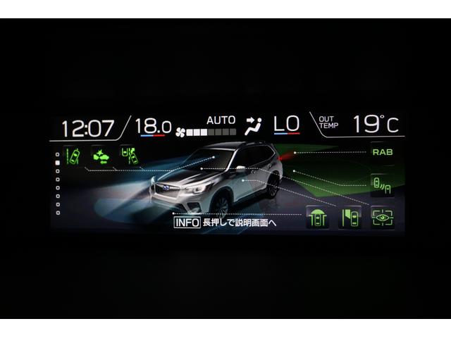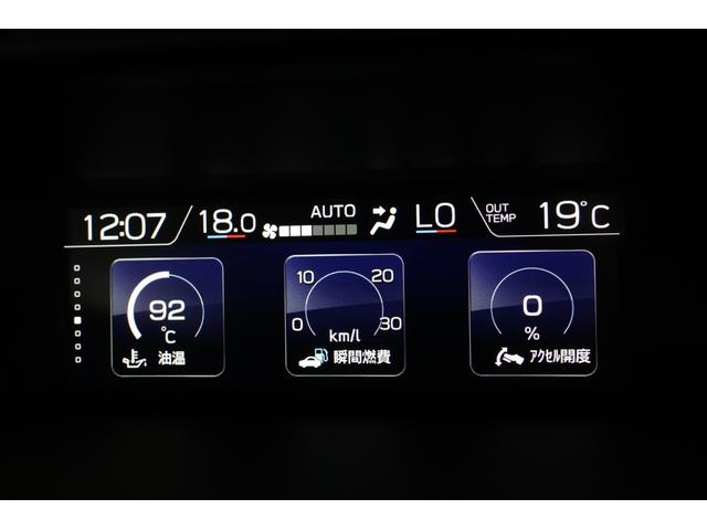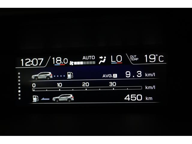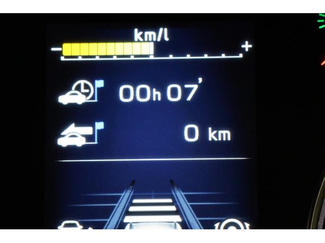 マルチファンクションディスプレイ。燃費表示など各種表示と設定が出来、異常を検知すると警告表示が割り込み表示したり、サイド&フロントビューモニターのカメラ映像もここに表示します。