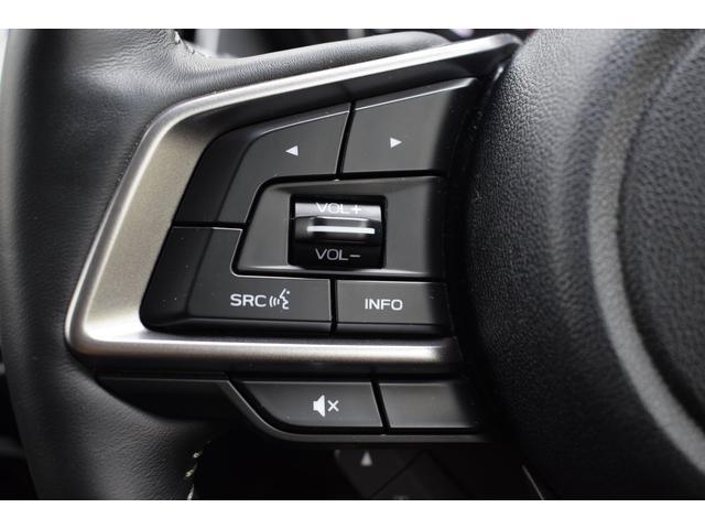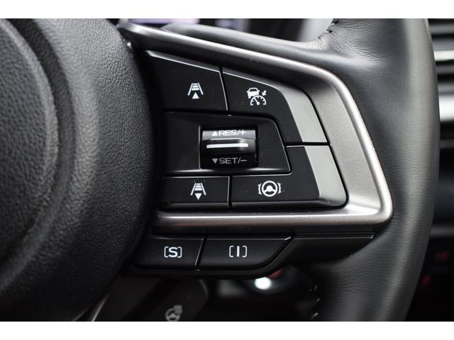 左:ステアリングオーディオコントロールスイッチ。オーディオの操作がお手元で可能です。右:全車速クルーズコントロールの操作スイッチで、アイサイトと連動し前方車両に追従走行できます。