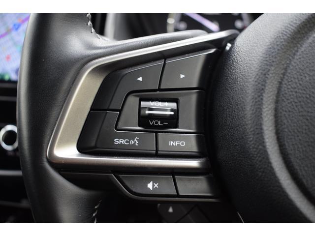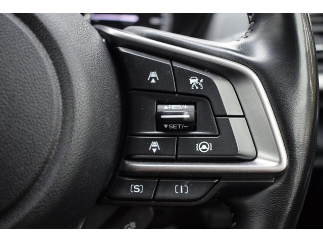 左:ステアリングオーディオコントロールスイッチ。オーディオの操作がお手元で可能です。右:全車速クルーズコントロールの操作スイッチで、アイサイトと連動し前方車両に追従走行できます。