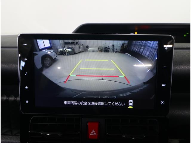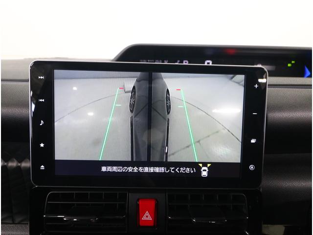 リヤビューカメラの映像です。ステアリング連動ガイドラインが、後退時の予想進路を表示し、運転のサポートを致します。