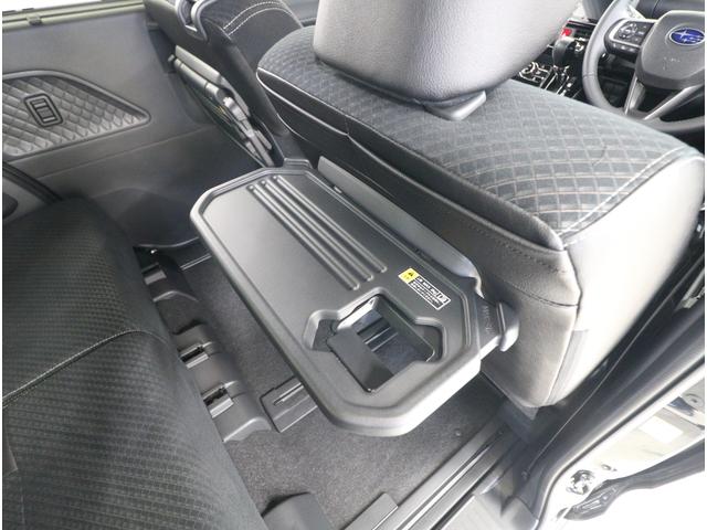 フロントシートの背面には便利なトレーを装備しています。車内での食事やドリンクを置くだけでなく、ノートPCやタブレットを使用するときにも活躍します。長時間のドライブや休憩時にも快適さを提供します。
