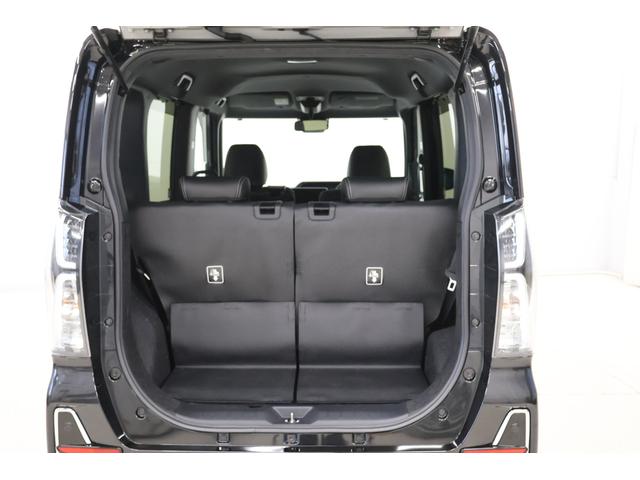 リヤシートを左右倒すと、広々としたワンフロア空間が完成。大きな荷物や長いアイテムも斜めに積むなど工夫次第で様々な荷物の収納が可能です。