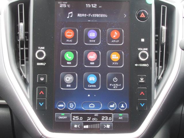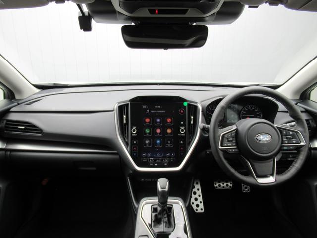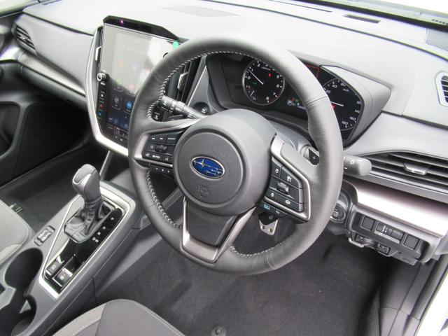 スバルらしい精悍な印象のフロントマスク。コの字型ヘッドライトはLEDを採用、またステアリング連動機能がありカーブを曲がる際、進行方向を照らします。