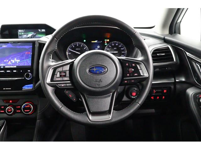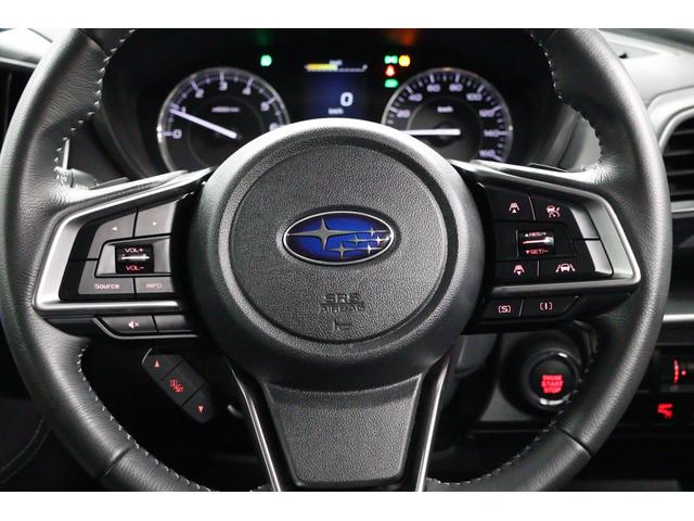 ステアリングの左右にはアイサイトのクルーズコントロール設定スイッチ、左側にはオーディオを中心としたサテライトスイッチが配されており、運転しながらの操作を用意にしてくれます。