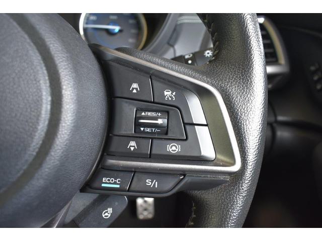 ステアリング右側に装備しているアイサイト・追尾スイッチ。こちらのスイッチにて高速走行時のアイサイト追尾巡航のON・OFFを行います。
