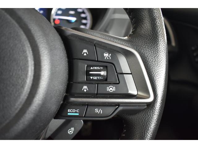 ステアリング右側に装備しているアイサイト・追尾スイッチ。こちらのスイッチにて高速走行時のアイサイト追尾巡航のON・OFFを行います。