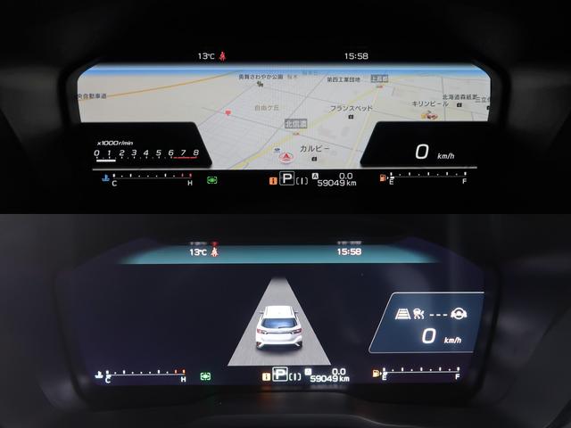 シーンや気分に応じて、ノーマル画面、ナビ情報を表示するの地図画面、運転支援の状態などを表示するアイサイト画面の3つのモードで自由に切り替え可能です。