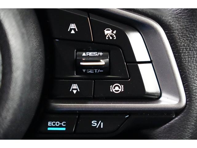 アイサイトの運転支援機能、クルーズコントロールのボタンです。前の車についていく機能や、一定の速さで走行する機能、車線をはみ出さない機能等有ります。